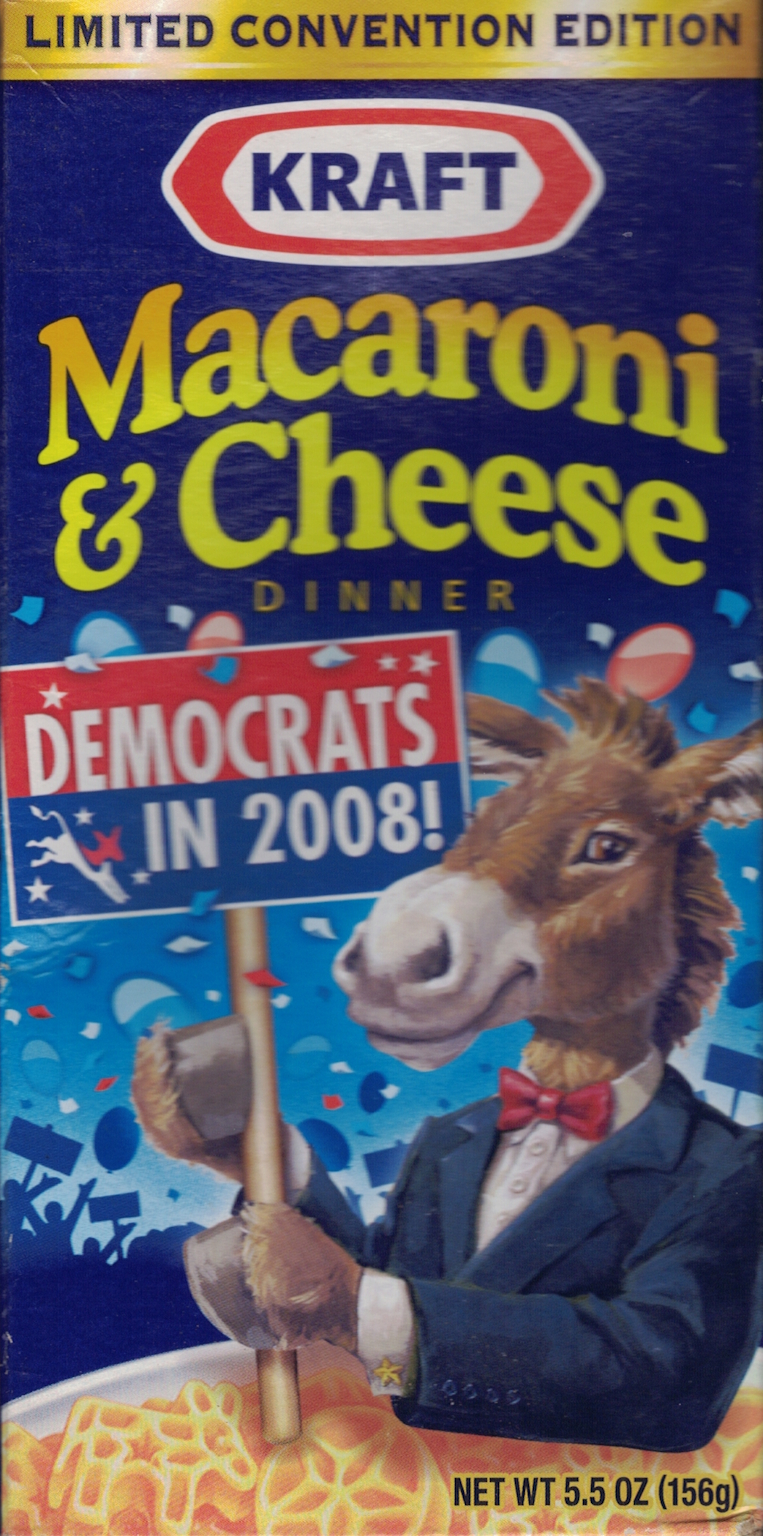 There are macaroni and cheese dinner covers in this collection from Canada, United States, Mexico, and Australia.